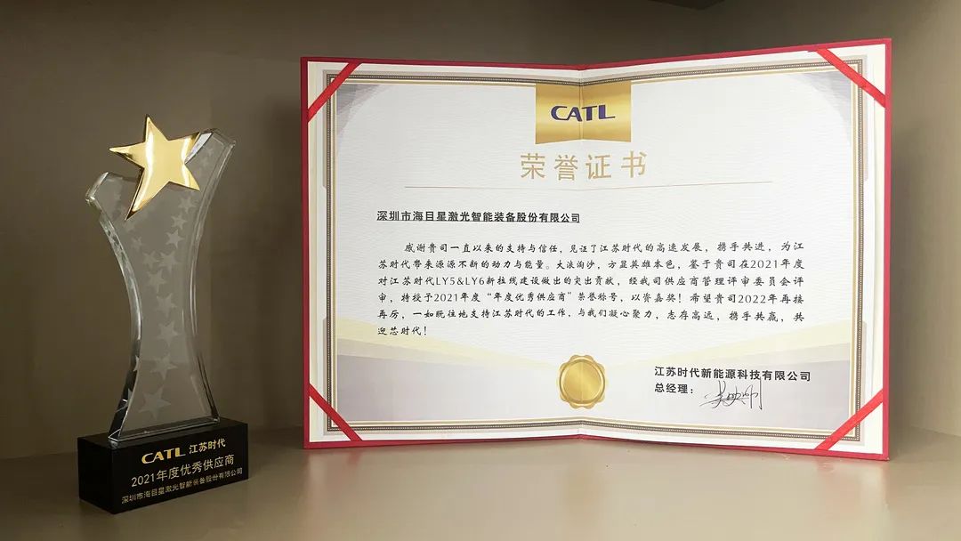 近日,海目星再獲合作伙伴認可,憑借強大的研發(fā)實力、精益求精的產(chǎn)品方案和專業(yè)的技術(shù)服務(wù),榮獲江蘇時代2021年度“年度優(yōu)秀供應(yīng)商” 榮譽稱號。