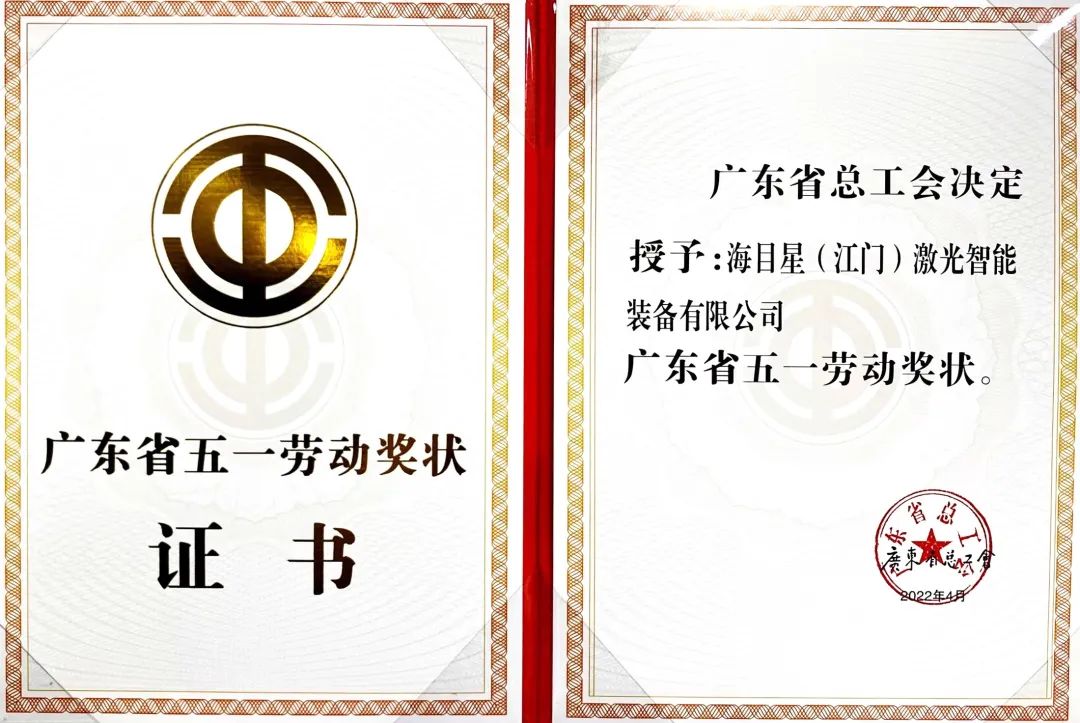 獲獎(jiǎng)榮譽(yù) | 江門(mén)海目星榮獲“廣東省五一勞動(dòng)獎(jiǎng)狀”