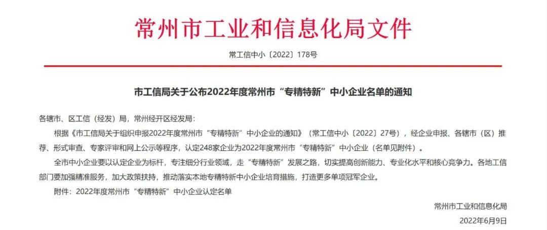近日,常州市工信局公示了2022年度常州市“專精特新”中小企業(yè)的入選名單,經(jīng)企業(yè)申報、各轄市(區(qū))推薦、形式審查、專家評審和網(wǎng)上公示等程序,海目星激光智能裝備(江蘇)有限公司(以下簡稱:江蘇海目星)被認(rèn)定為2022年度常州市“專精特新”中小企業(yè)。
